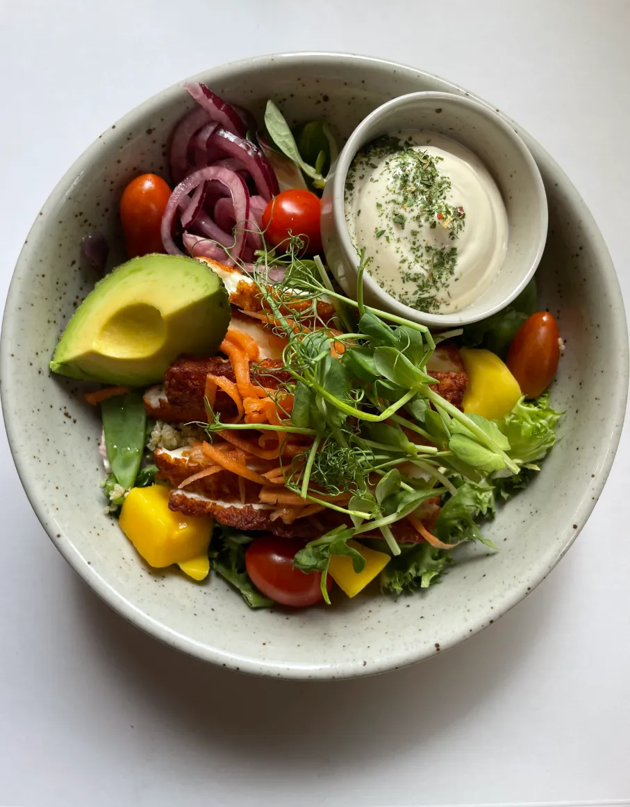 Hem / Sallader / Halloumisallad Halloumisallad129kr Sallad, sockerärtor, tomat, picklad rödlök, quinoa, mango, avokado, morot, friterad halloumi & tryffeldipp. Halloumisallad mängd Lägg till i varukorg Kategori: Sallader Relaterade produkter Kålcaesar med räkor 149kr Lägg till i varukorg Falafelsallad (vegansk) 129kr Lägg till i varukorg Caesarsallad 139kr Lägg till i varukorg Pestokycklingsallad 139kr Lägg till i varukorg